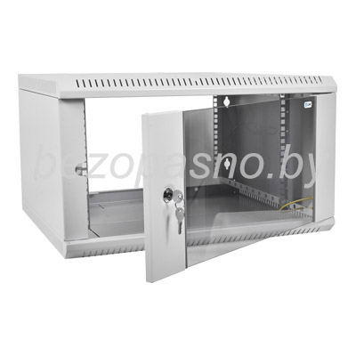 Настенный шкаф 19" ШРН-Э имеет полностью разборную конструкцию и состоит из пяти основных частей: крыша, дно, две передние направляющие, две боковые стенки c вертикальными направляющими, дверь. Настенный шкаф 19" ШРН-Э легок в сборке. За счет элементов крепления каркас шкафа имеет повышенную жесткость. Возможна комплектация металлической дверью и дверью с тонированным стеклом. Возможна установка двери как с правой, так и с левой стороны. Дверь фиксируется точечным замком. Предусмотрены два кабельных ввода в верхней и нижней частях шкафа, размер – 95х40мм. Перфорация обеспечивает хорошую вентиляцию.