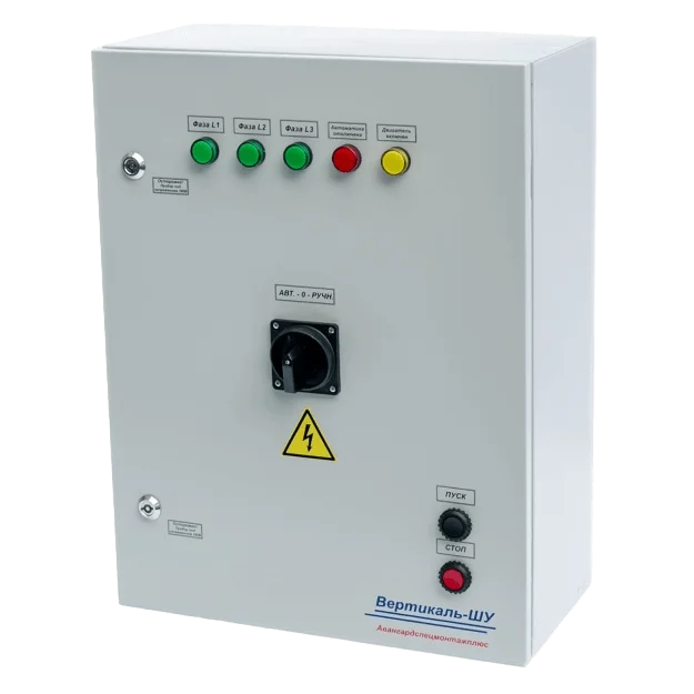 Шкаф управления (ШУ) конструктивно выполнен в защищённом, стационарном исполнении и предназначен для коммутации силовых электрических цепей переменного тока к инженерному, технологическому, электротехническому и другому оборудованию, в том числе к электродвигателям насосов, вентиляторов и т. д. Шкафы силовой пожарной автоматики для однофазной и трехфазной сети включают контактор, автомат зашиты, схему контроля фаз, кнопку ручного пуска, переключатель режимов работы, индикацию. Все шкафы имеют релейные выходы состояния.
