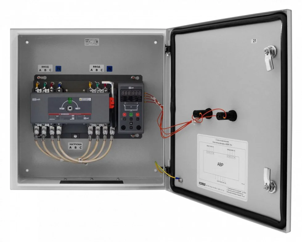 Блок ввода резерва для переключения с током нагрузки до 65 А. Шкафы ввода резерва ШВР-30 являются составной частью адресного блочно-модульного прибора пожарного управления и предназначены для обеспечения автоматического переключения питания ППУ с основного ввода трехфазного электропитания на резервный и обратно.