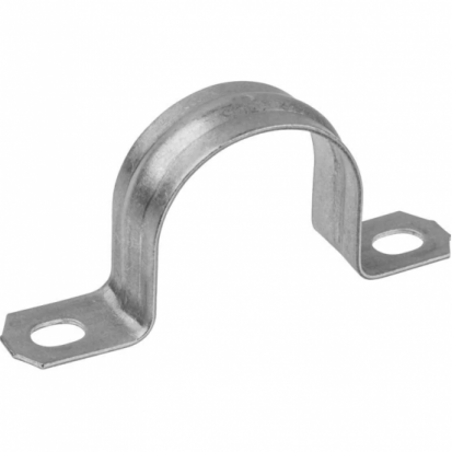Скоба двухлапковая из оцинкованной стали для прокладки металлорукавов, стальных и полимерных труб наружным диаметром до 60 мм.
