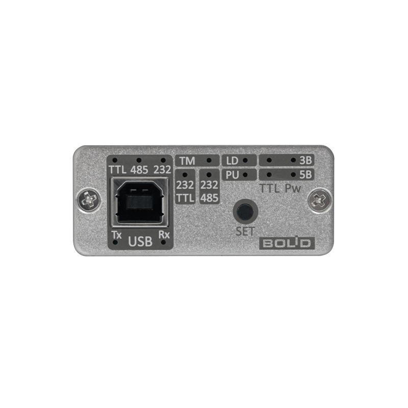 Универсальный преобразователь интерфейсов "USB-RS" предназначен для преобразования сигналов интерфейсов. Область применения изделия – вспомогательное оборудование для настройки систем охранно-пожарной сигнализации, контроля доступа, видеонаблюдения, автоматического пожаротушения, а также для наладки систем контроля и диспетчеризации объектов.