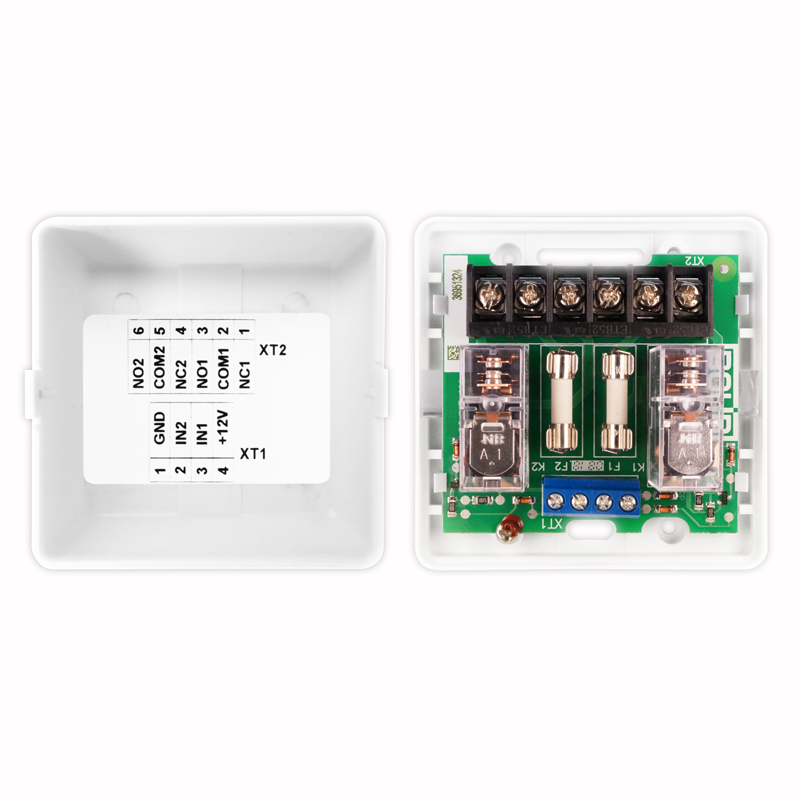 Устройство коммутационное УК-ВК/06 содержит два реле с переключающими контактами и схему управления, позволяющую включать реле сигналом уровня логическая «1» (+ 5В КМОП). Используется совместно с контроллером доступа «С2000-2», работающим в режиме «Шлагбаум», для управления светофором, а также коммутации исполнительных устройств системах охранно-пожарной сигнализации и контроля доступа.
