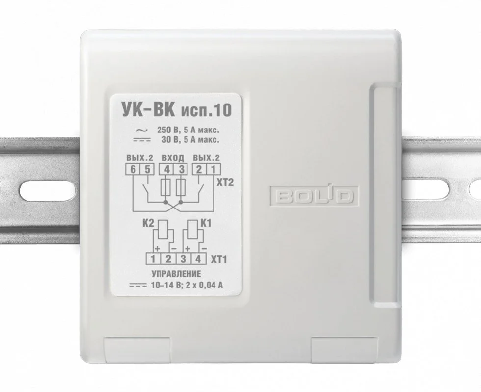 Устройства коммутационное УК-ВК исп.10 предназначены для использования в системах контроля доступа и охранной сигнализации для коммутации исполнительных устройств, в системах пожарной сигнализации для передачи стартового импульса на приборы пожарные управления.