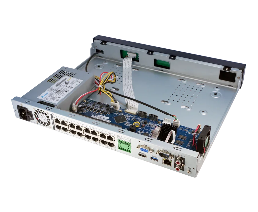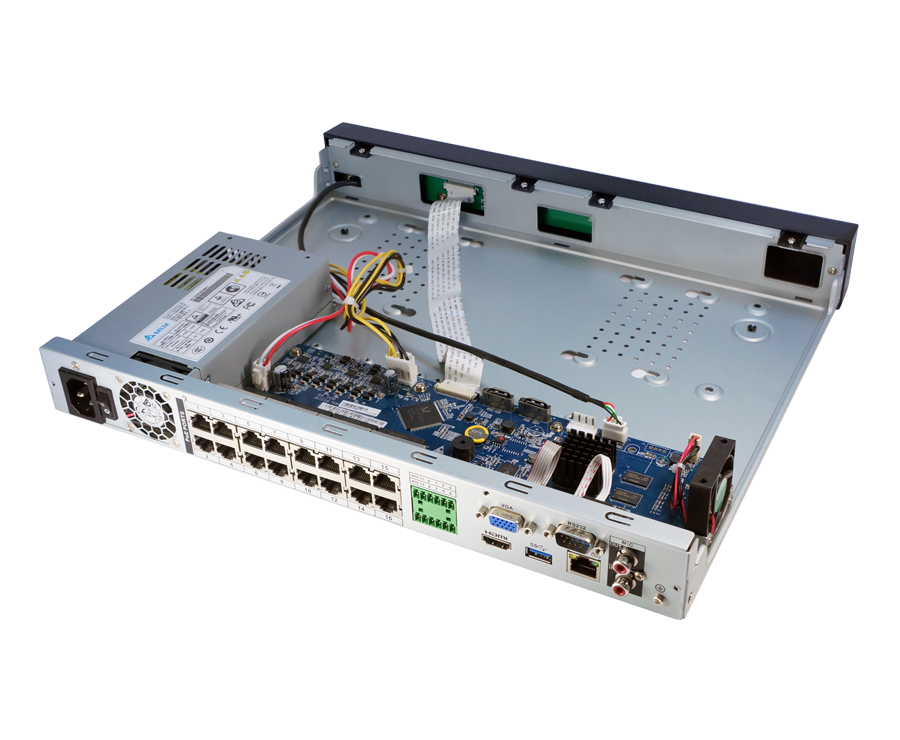 Встроенный адаптер PoE для питания 16 видеокамер по кабелю сети Ethernet.