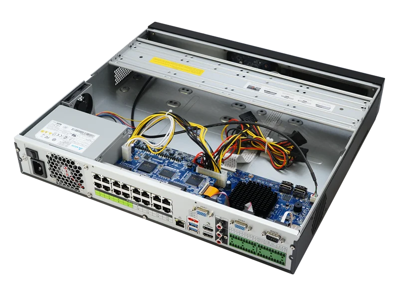 Встроенный адаптер PoE для питания 16 видеокамер по кабелю сети Ethernet.